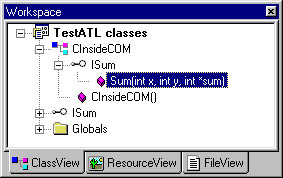 Figure 3-8 The ISum::Sum method shown in the Visual C++ Workspace window.