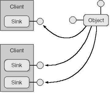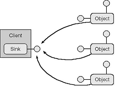 Figure 8-5. A single sink receiving events fired from multiple connectable objects.